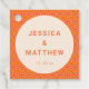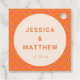Dieses personalisierte Etikett zeigt ein auffälliges, geometrisches Muster im modernen Stil der Mitte des Jahrhunderts in warmen Orange- und Rosatönen, wobei die Namen des Paares und das Hochzeitsdatum in einem cremefarbenen Kreis zentriert sind. Das moderne Fliesenmotiv bringt eine retro-vibrante Energie. Passen Sie es mit beliebigen Namen und Daten an, um Ihre Hochzeitsdekoration mit einem einheitlichen, auffälligen Look zu verbinden. Perfekt für eine boho-, maximalistische oder vintage-inspirierte Hochzeitsästhetik.