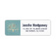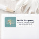 Rücksendeadressen-Aufkleber mit einem gedämpften grünen Hintergrund, der oben auf einem hellgelben Baum liegt, mit zwei orangefarbenen Vogelarten, die auf den Zweigen sitzen.