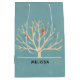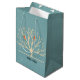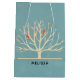 Eine Geschenktasche mit einem gedämpften, grünen Hintergrund, überlagert, ist ein hellgelber Baum mit 2 orangefarbenen Silhouetten, die auf den Ästen sitzen. Personalisieren Sie Ihre Daten mit einem Namen oder einem anderen Text.
