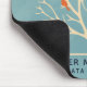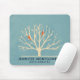 Ein Mousepad personalisiert mit Ihrem Namen und Titel. Der hellgelbe Baum ist mit einem abgestuften grünen Hintergrund überlegt und hat 2 orangefarbene Silhouetten, die auf den Zweigen sitzen.
