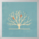 Das Poster mit einem abgestuften grünen Hintergrund, der oben auf dem Boden liegt, ist ein hellgelber Baum mit 2 orangefarbenen Silhouetten, die auf den Ästen sitzen.