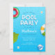 Es ist cool und modern Sommer Pool Party Einladung Karte. Bestens für die Sommergeburtstagsfeier. Es verfügt über Blätter aus Palmen und einen blauen Swimmingpool mit lustiger Typografie. Alle Texte sind leicht anpassbar.