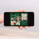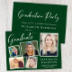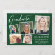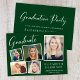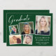 Moderne grüne Abschlussfeier mit einer 5-Foto-Bildersammlung in weißen Rahmen, "Graduate" in einem stilvollen weißen Drehbuch, dem Namen des Absolventen in eleganter weißer Typografie und ihrer Schule und Klasse Jahr in schlicht weißer Typografie. Passen Sie Ihre Party-Details auf der Rückseite an.