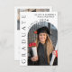 Dieses moderne stilvolle Foto Abschluss lädt mit einem senkrechten Foto in einem Bogen und einem anpassbaren Skriptnamen "GRADUATE", dem High School-Namen und der Klasse von 2024 vorn ein. Die Rückseite lädt mit Party-Details ein. Ideal für Hochschul-, Uni- oder Universitätsfeiern.