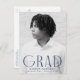 Einfache Abschlussfeier Einladung Postkarte mit dem vertikalen Foto des Absolventen mit "Graduate" in der Marine, moderne Kunst Deko Schrift dargestellt. Personalisieren Sie die Front der Foto Graduation Party einladen, indem Sie den Namen, Schule und Gradjahr des Absolventen. Die Postkarte kehrt um, um Ihre Rücksendeadresse und Graduiertengruppendetails anzuzeigen. Die Postkarte ist sowohl für Absolventen der Oberschule als auch für Unis geeignet!