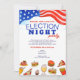 Feiern Sie mit dieser lustigen und festlichen Party Einladung die Wahlabend im amerikanischen Stil. Mit kühnen patriotischen Farben, einer amerikanischen Flagge und spielerischen Essensbeispielen von Burgern, Eis, Kuchen, Pizza und Bier, Set diese Einladung die Bühne für eine Nacht des Lachen, guter Gesellschaft und des Spielens beim ergebnisorientierten Sehen. Egal, ob Ihre Gäste rot oder blau gewählt haben, jeder ist eingeladen, sich zu entspannen, klassische Komfort-Speisen zu genießen und in die Demokratie zu toasten. Ideal für Freunde, Familie, Mitarbeiter oder Ansammlungen in der Gemeinde - diese Einladung ist ein leichter Weg, um jeden für ein unvergessliches Party in der Nacht zu vereinen. Machen Sie sich einfach mit Ihren Veranstaltungsdetails persönlich und bereiten Sie sich auf eine Nacht voller Fröhlichkeit, Essen und Stimmungen vor! ALT-Text: Patriotische Party Einladung am Wahlabend mit amerikanischer Flagge, Illustrationen von Burgern, Pizza, Eis, Kuchen und Bier, mit der Phrase "Burgers, Beer & Ballots" über dem fett gedruckten Text, in dem es heißt: "Party der Nacht zur Wahl".