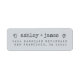 Das schicke, moderne und schlichte Ehering-Adressetikett mit Ihren Namen in der dunkelblauen Typografie auf pastellblauem Hintergrund mit einer stilvollen Touch handgezeichneter Herzen. Fügen Sie einfach Ihren Namen und Ihre Adresse hinzu. Exklusiv für Sie entworfen von Happy Dolphin Studio.