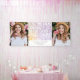 Moderne moderne grungy 2 Foto Graduation Party Dekor Foto Banner. Mit Platz für Foto und Informationen auf der Kartenrückseite. Moderne mädchenhafte Rosa, Pur[pur, aquamarin, blau, grün, orange, gelb pastellfarbene Regenbogen und Weiß können auf Ihren Stil angepasst werden.