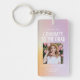 Die moderne Dekoration der Graduierungsparty im grungy Foto begünstigt den Schlüsselanhänger. Mit Platz für Foto und Informationen auf der Kartenrückseite. Moderne mädchenhafte Rosa, Pur[pur, aquamarin, blau, grün, orange, gelb pastellfarbene Regenbogen und Weiß können auf Ihren Stil angepasst werden.