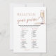Die moderne Elegant Perlen & Prosecco Was ist in Eurem Purse-Spiel ist eine charmante Ergänzung zu Ihren Brautparty-Festlichkeiten. Dieses Spiel mit raffinierten Perlen und Motiven der Prosecco lädt die Gäste dazu ein, ihre Geldbörsen zu erkunden und Punkte für Gegenstände zu sammeln, die sie zur Verfügung haben. Es ist eine unterhaltsame und interaktive Art, das Eis zu brechen und alle einzubinden, um bleibende Erinnerungen für die Braut und ihre Gäste zu schaffen.