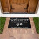 Personalisiert moderne "Willkommen. Wir hoffen, dass Sie Hunde mögen" Türmatte in Schwarz-Weiß.
