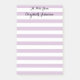 Maßgeschneiderte, moderne, schicke, stilvolle, trendige lila-weiße Streifen Muster, schöne elegante Drehbuch / Typografie, personalisierte Kindergartenlehrer Zuhause-Büro-Business 3M klebrige Notizblock. Geben Sie einfach Ihren Namen / Firma / Firmennamen ein, um Ihre persönlichen Wünsche zu erfüllen. Sie können auch den Titel oben von "vom Schreibtisch aus" in "Eine Notiz von", "To Do List" oder "Things To Do" oder eine andere Überschrift Ihrer Wahl ändern.
