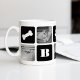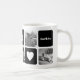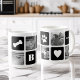 Passen Sie dieses niedliche moderne Design der Tasse mit Ihren Lieblings-Fotos Ihrer Pooch an! Dieses Design ist ein tolles Geschenk für jeden Elternteil. Es besteht aus abwechselnden Quadraten von Fotos und knusprigen schwarzen Blöcken mit Hundeknochen, Pfotendruck, Herz, Monogramm Ihres Hundes oder Ihrer Familie und dem Namen Ihres Junges in weißer Schrift. Fügen Sie fünf Ihrer beliebten quadratischen Fotos (perfekt für Instagram!) mit den bereitgestellten Vorlagen hinzu.