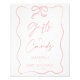 Moderne Pink Girl Bow Babydusche Geschenkgutscheine Schild Einfache und elegante Mädchen's rosa Bugbaby Duschkarten und Geschenkschild, auch mit einem rosa wavy Rahmen und hellrosa Rahmen.