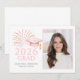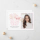 Feiern Sie Ihren 2026er Absolventen mit dieser rosa und goldenen Abschlussanzeige mit einer rosafarbenen Abschlusskappe, goldenem Quast und funkelnden Feuerwerken mit Fotovorlage. Ein modernes, elegantes Design, perfekt für eine stilvolle High-School- oder Universitätsabschlussfeier.