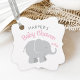 Moderne pinkfarbene und graue Elephant Girl Baby D Geschenkanhänger