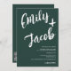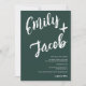 Moderne, kühne und elegante Hochzeitseinladung mit individuellen Namen mit handgeschriebenem Marker gebürstete Kalligraphie in dunkelgrün und weiß. Alle Texte, Namen und Hintergrundfarben sind anpassbar. Eine einfache und minimalistische Einladung. Fügen Sie Ihren qr-Code für ein All in einem Hochzeitsladen mit uAwg, Details und mehr Informationen.