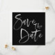Moderne handgeschriebene Pinselkalligraphie Script Black Wedding speichern das Datum Einladung. Eine zeitgemäße und moderne Save the Date Vorlage mit weißer Kalligrafie Pinselschrift auf schwarzem Hintergrund und Namen und Hochzeitstag auf der Rückseite. Passen Sie es mit Ihren eigenen Hochzeitsinformationen an und ändern Sie die Farbe des Hintergrunds, wenn Sie möchten. Eine zeitgenössische Hochzeitsankündigung für moderne Paare. Dieses Save the Date Design ist auch mit schwarzem Text auf weißem Hintergrund in meinem Shop erhältlich.