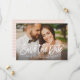 Mit diesen modernen Ankündigung Datum freihalten-Karten, die Ihr Verlobung-Foto mit einem rustikalen Pinsel-Overlay-Design auf der Vorderseite zeigen, kündigen Sie Ihre Hochzeit stilvoll an. Dazu kommt ein abgestimmtes Muster von handgezeichnet Streifen auf der Rückseite mit einer rot-rosa Hintergrundfarbe (kann verändert werden). Enthält eine einfache Formulierung, die mit den wichtigen Details personalisiert werden kann. Beachten Sie, dass der Filter für den dunklen Foto entfernt werden kann.