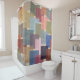 Ein farbenfroher Vintager Stil Mitte des Jahrhunderts moderne Muster mit Quadraten und ein Imitat bedrückt Effekt.