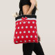 Elegante silberne Polka Punkte mit rotem Band auf rotem Hintergrund mit schwarzem Header Tote Tasche.