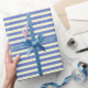 Moderne Polo Blue und Mimosa Stripe Muster Geschen Geschenkpapier