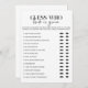 Testen Sie Ihr Wissen über das neue Paar mit diesem modernen Brautparty Bride oder Groom Spiel druckbar. Die minimalen Spielkarten sind perfekt für jedes Brautparty. Bevor das Party beginnt, frag die Braut und pflege die Fragen, die auf den Spielkarten aufgeführt sind, und schreibe ihre Antworten auf. Dies wird Ihr Antwortschlüssel sein. Die Fragen können personalisiert sein, um das Spiel noch einzigartiger zu machen. Gib im Brautparty jedem Gast eine Spielkarte und einen Stift und lass ihm zu erraten, wer was gesagt hat. Die Person mit der korrektesten Antwort gewinnt! Sie können das Spiel noch unterhaltsamer und interaktiver gestalten, indem Sie jedem Gast ein Set Lippen und Schnurrbärte geben. Wenn der Wirt des Brautparty über die Aussagen geht, wird jeder seine Antwort zeigen, indem er die Lippen bzw. den Schnurrbart an seinem Gesicht hält. Lassen Sie die Braut und den Bräutigam die Antwort offenbaren, indem sie dasselbe tun. Behalt deine Kamera bereit für ein paar tolle Bilder!