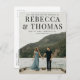 Dieses moderne Foto Save the Date Postcard kündigt Ihre bevorstehende Hochzeit im Stil an. Dieses Produkt ermöglicht es Paaren, ein volles Blutbild oder ein vertikales Foto zu zeigen, ihre Namen und Veranstaltungsdetails anzupassen. Auf der Rückseite befindet sich ein zusätzlicher Text, mit dem Sie weitere Ereignisdetails hinzufügen können. Dies ist eine lustige, wirtschaftliche Art und Weise, um die Daten zu speichern und Sie werden nicht einmal einen Umschlag benötigen.