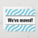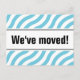 Moderne, bewegte Postkarten mit blauen Wellenlinien. Benutzerdefinierter Bewegungstext; Wir sind umgezogen! Fügen Sie Ihre neue Adresse auf der Rückseite ein. Moderne neue Hauskarten für Zuhause und Business. Eine tolle Idee für den Umzug von Restaurants.