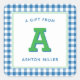 Ein farbenprächtiges, prächtiges Monogramm-Geschenketikett mit einem blauen Gingham-Muster und grünen Akzenten ist perfekt für jeden Anlass.