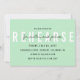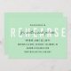 Modernes und einfaches Abendessen in Probe mit einem angesagten, minzgrünen Hintergrund mit den Namen der Braut und des Bräutigams in einem handgeschriebenen Schriftart.