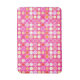 Moderne Badematte aus grafischem Design - große, retro begrenzte Punkte in warmen Pastellfarben auf tiefem Fuchsienrosa