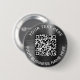Moderner Werbe-Button für Ihr Unternehmen oder Ihre Organisation mit gebürstetem dunkelsilberfarbenem Imitat auf metallischem Hintergrund. Fügen Sie Ihren QR-Code oder Ihr Logo und zwei Zeilen weißem Text, wie z. B. Ihr Firmenname, Slogan, danke, oder verlass leer.