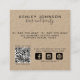 Unsere "Modern QR Code Website Botanical Kraft and Black Square Business Card" verbindet rustikale Anziehungskraft nahtlos mit modernem Design. Auf Kraftpapier gedruckt, zeichnet es sich durch einen stilvollen schwarzen botanischen Druck aus und zeigt auf der Vorderseite Ihren Namen und Titel an. Auf der Rückseite befinden sich Ihre Kontaktdaten, Social Media Icons und ein Benutzernamensfeld sowie ein QR-Code für den einfachen digitalen Zugriff. Diese Visitenkarte ist ideal für Profis, die einen unverwechselbaren Stil und praktische Funktionalität schätzen. Sie macht einen unvergesslichen Eindruck und verbessert gleichzeitig Ihre Netzwerkarbeit. Wenn Sie unser Design mit Social Media Icons personalisieren, haben Sie die Flexibilität, die Icons auszuwählen, die Ihren Bedürfnissen am besten Anzug bieten. Zum Anpassen können Sie einfach auf die Funktion 'Design bearbeiten' zugreifen und zum Abschnitt Ebenen navigieren. Hier können Sie die Ebenen, die verschiedenen Social Media Icons entsprechen, einfach ein- oder ausschalten. So können Sie Ihr Design optimieren, indem Sie nur die Icons einbinden, die Sie benötigen, um sicherzustellen, dass Ihr Endprodukt sowohl funktional als auch ästhetisch angenehm ist. Egal, ob Sie Werbematerial, persönliche Projekte oder etwas dazwischen kreieren, dieses Feature gibt Ihnen Kontrolle darüber, wie Sie mit Ihrem Publikum über verschiedene soziale Plattformen hinweg in Verbindung treten. Kontaktieren Sie Designer für passende Produkte. Copyright Anastasia Surridge, alle Rechte vorbehalten.