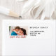 Elegantes Foto mit weißem Rahmen Save the Date Rücksendeadressen-Aufkleber mit rot-rosa Schriftzeichen. Elke Clarke© Frische Stadtgestaltung. Weitere Farben für den "Save the Date" Text sind auf Anfrage verfügbar, ebenso die Hintergrundfarbe.