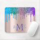 Moderne Rainbow Glitzer Tropfen Rose Gold Monogram Mousepad