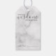 Fügen Sie Ihrer Hochzeit eine persönliche Touch mit einem modernen Skript Hochzeitsratschlag und Wünsche Tag-Karte. Diese Ratenkarte enthält den Titel "Worte der Weisheit" mit Details in grauem Skript und sans serif Schriftart Stil auf weißem Marmor Hintergrund. Ideal für Hochzeiten, Babydusche, Geburtstagsparty, Brautparty, Junggeselinnen-Abschied und alle besondere Anlässe.
