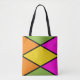 Schenken Sie sich den Schrank mit dieser Sommertote-Tasche mit einer spielerischen Raute in leuchtenden Gelb-, Orange-, Grün- und Rosatönen. Dieses Design ist minimalistisch und modern, und es wird eine Vielzahl von Sommeroutfits ergänzen.