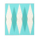 Dieses moderne Notizblock aus dem Mittelalter besticht durch einen lebendigen, türkisfarbenen Hintergrund und ein Muster aus Mod, lichtdurchlässigen aquamarinen Diamanten, die größere, Vintage Cremetamornen mit goldfarbenen Splitterklötzen überlagern. Diese minimalistisch inspiriert, dekonstruierte Raute ist eine vereinfachende Rückgabe der größeren als der Lebensatomärzeit, die die Dekorationslandschaft der 1950er und 1960er Jahre dominierte. Dieses kitschige Design erinnert an alles, von den Retro-Bowling-Gassen-Schildern von Palm Springs bis zu den Fernsehfächern, die Sie bei Ihrer Großmutter benutzt haben.