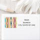 Diese Rücksendeadressen-Aufkleber haben ein modernes Design von vertikalen Linien mit abgerundeten Rechtecken in steigender und abnehmender Größe in Retrofarben Rot, Grün, Blau, Gelb, Orange und Braun auf einem weißen Feld.