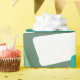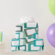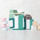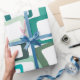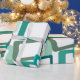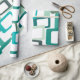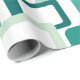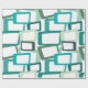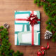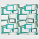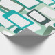 Dieses Verpackungspapier hat ein modernes Design von verzerrten Rechtecken mit weißen Löchern in Blau-Grün-Tönen.