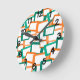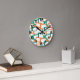 Diese Wanduhr ist in einem modernen Design aus der Mitte des Jahrhunderts mit schrägen Rechtecken in aquamarinen und orangefarbenen Weißlöchern gestaltet.