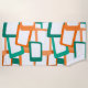 Dieses Strandtuch ist in einem modernen Design aus der Mitte des Jahrhunderts mit schrägen Rechtecken in aquamarinen und orangefarbenen Weißlöchern gestaltet.