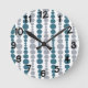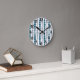 Diese ganze Uhr hat ein modernes Design von aquamarinen und grauen abgerundeten Rechtecken in steigender und abnehmender Größe, das vertikal auf einem weißen Feld läuft.