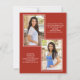 Moderne, niedliche und schicke, rote Abschluss Foto-Karte für die Klasse 2022 oder jedes Jahr. Personalisieren Sie mit Ihrem eigenen Foto auf der Vorderseite, Ihrem Namen, Schulnamen und Abschluss Jahr. Vertikal formatiert. Die Rückseite dieser Karte hat 2 Fotos und alle Informationen, die Sie hinzufügen möchten. Das kann Schulleistungen sein, Zukunftspläne, Informationen zur Abschlussfeier oder alles andere, was Sie gewollt haben zu teilen. Auch die Hintergrundfarbe ist anpassbar.