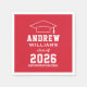 Die modernen Servietten der Graduiertengruppe verfügen über eine Gradmütze mit schlichter und moderner weißer Typografie, die mit dem Namen und der Schule des Absolventen personalisiert werden kann. Roter Hintergrund kann an jede Schule oder Party-Themenfarbe angepasst werden.