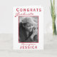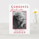 Moderne Red Glückwunschs Graduate Abschluss Foto Card mit Graduate Name und Foto. Abschluss-Karte mit Glückwünschen, Graduiertenname in dunkelrot und Foto des Absolventen auf der Vorderseite - personalisieren Sie mit Ihrem Namen und Ihrem Foto. Personalisieren oder löschen Sie den Text in der Karte. Die Graduationskappe ist auf der Rückseite.
