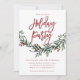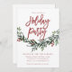Moderne Rot-Script-Grün Holiday Party-Party-Einladung mit kühnen Skripten und Aquarell mit Blätter und Beeren. Eine große persönliche oder geschäftliche Einladung.