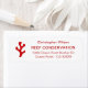 Einfache Rücksendeklemme mit minimalistisch rotem Korallenlogo und moderner Typografie auf weißem Hintergrund. Diese minimalistische Rücksendeaufkleber-Vorlage enthält Ihren individuelle Name, Beruf oder Firma und Ihre Adresse, die verschiedene serifenlose Schriftart aus der gleichen Familie kombiniert. Erstellen Sie Ihre eigenen und machen Adressenumschläge eine Brise © y.BEE SEA