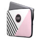 Die moderne, geometrische Struktur des Pops mit Retro-Ambiente, der vorwärts-Laptop-Mantel, hat schwarze Streifen und rosa Farbblöcke mit einem markanten, passenden runden Rahmen, der Ihr Monogramm umgibt. Personalisieren Sie die Textvorlage mit Ihrem Monogramm. In diesem stilvollen Design sind weitere passende Büroprodukte und technisches Zubehör erhältlich.